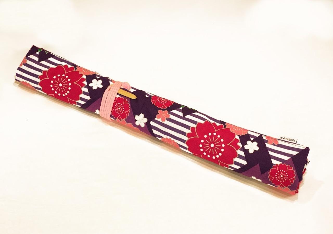 この笛袋の設計は秋吉沙羅が高校生の頃、頭の中にふとひらめいたもので、以来このオリジナルの形を自作で使い続けています。