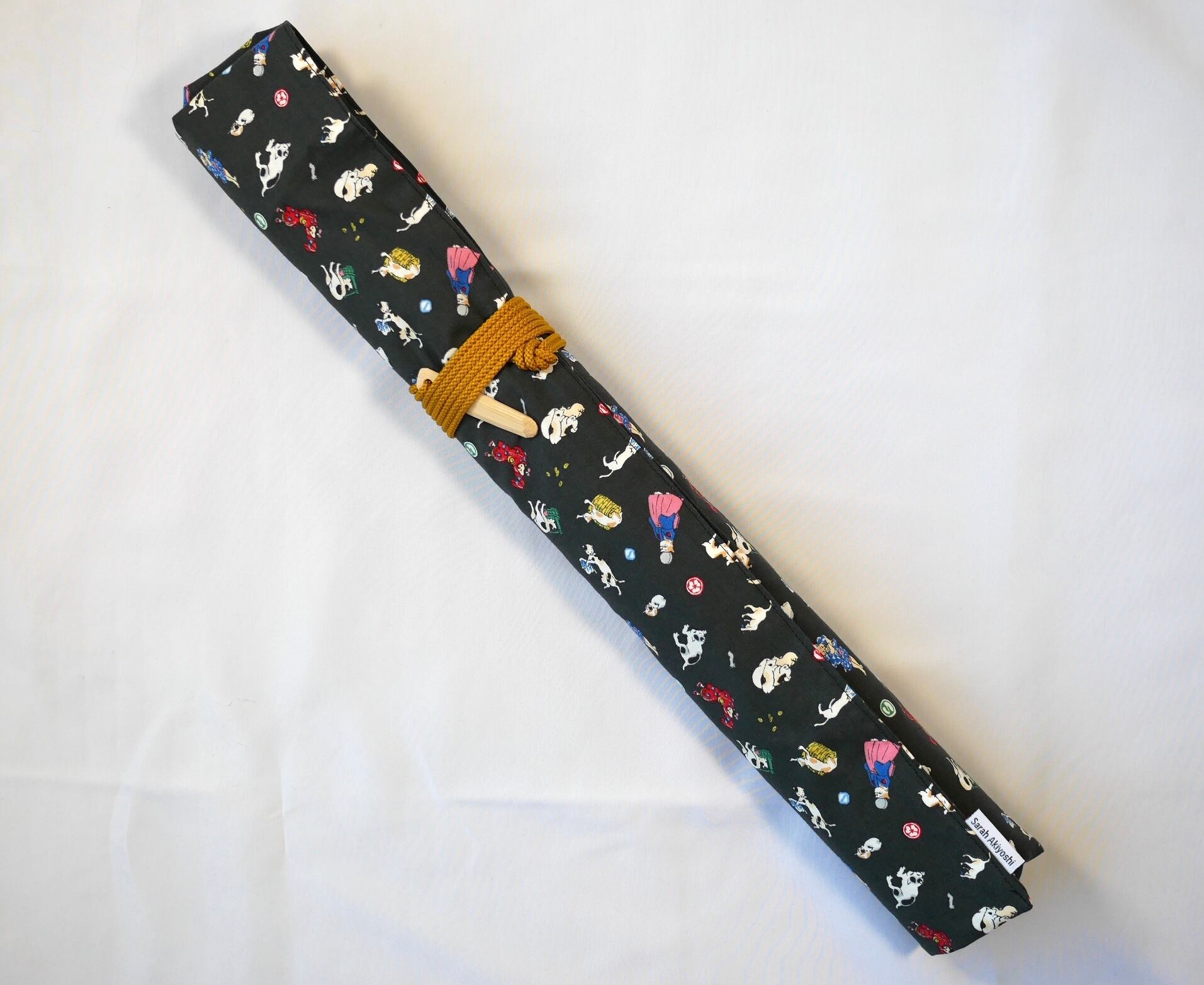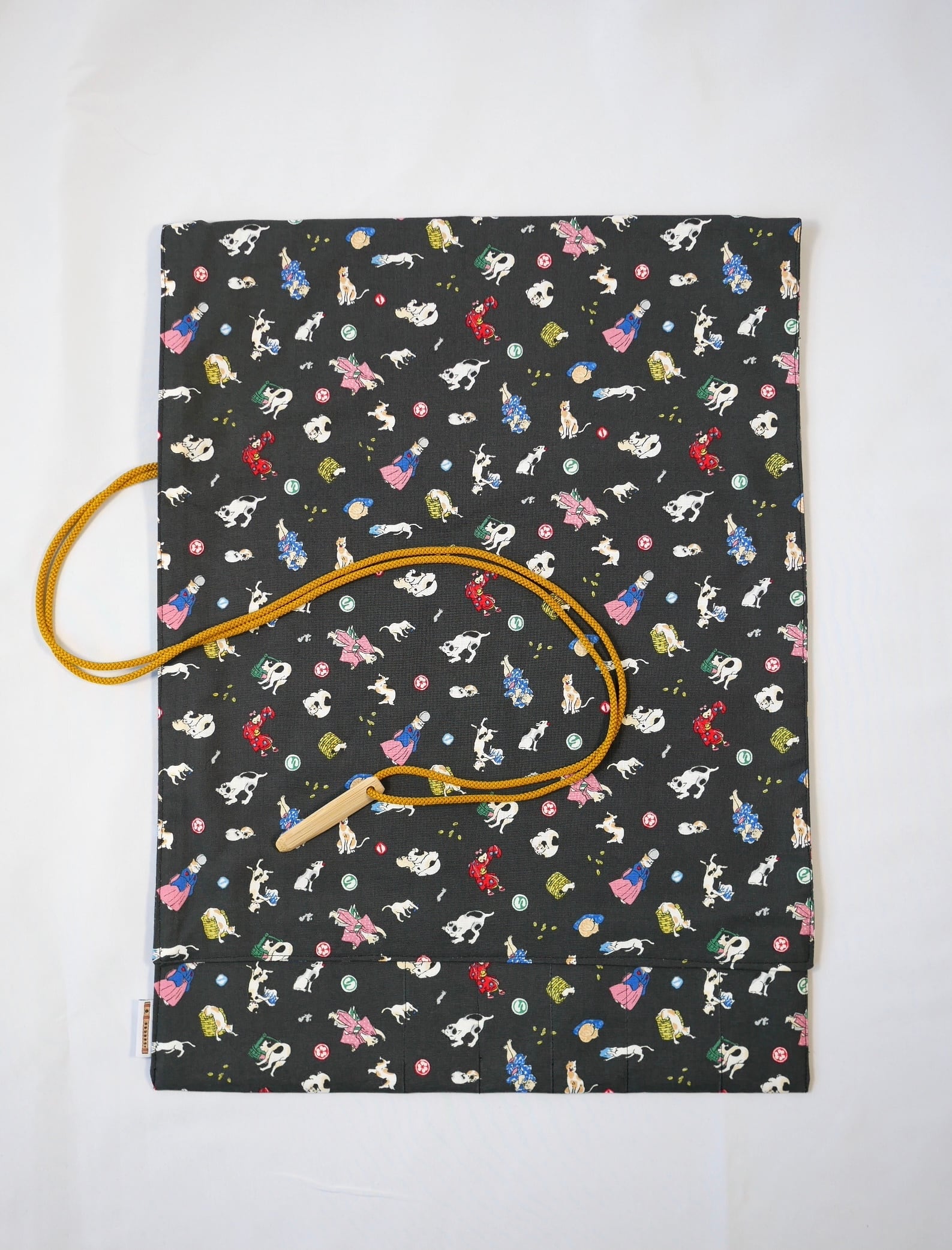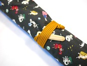 笛袋全体を紐で巻き、笹止めをさして止めます。
